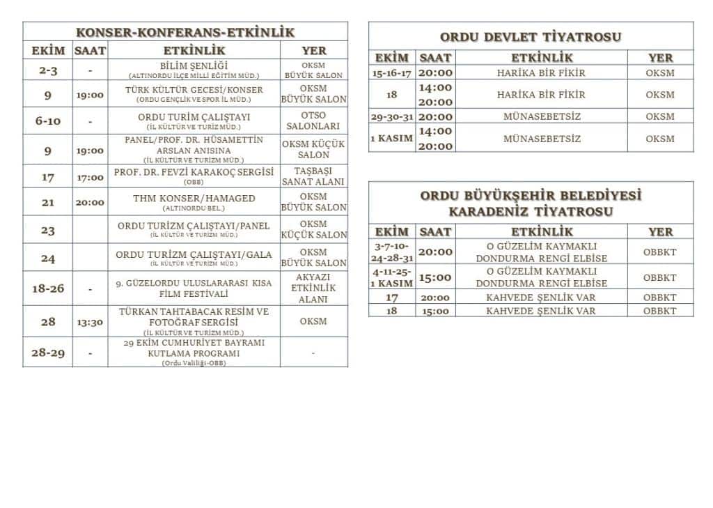 Ordu Ekim Ayı Etkinlik Takvimi Görsellerde Paylaşılmıştır.